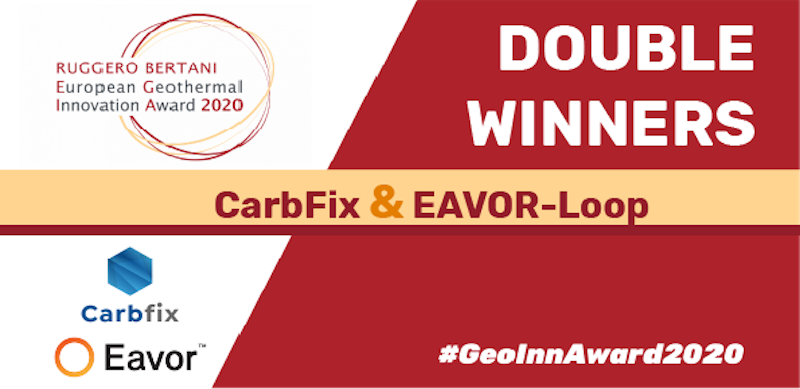CarbFix ve Eavor Technologies, EGEC ve Messe Offenburg tarafından açıklandığı üzere, eşit haklarla Ruggero Bertani Avrupa Jeotermal İnovasyon Ödülü'nün kazananları olarak ilan edildi.