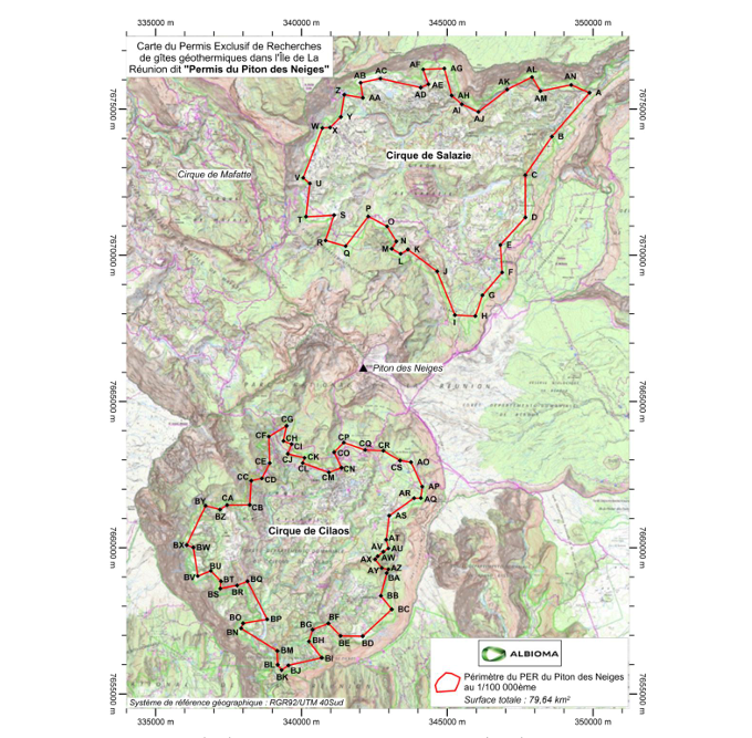 Fransız enerji şirketi Albioma'ya, Reunion Adası'ndaki Pitos des Neiges çevresindeki Salazie ve Cilaos bölgeleri için jeotermal araştırma izni verildi.