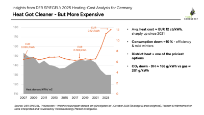 DER SPIEGEL’e (Ekim 2025) dayanan analiz ” Heizkosten – Welche Heizungsart derzeit am günstigsten ist. ” (ödeme duvarının arkasında) ThinkGeoEnergy Market Intelligence tarafından hazırlanan grafikler ve yorumlar.