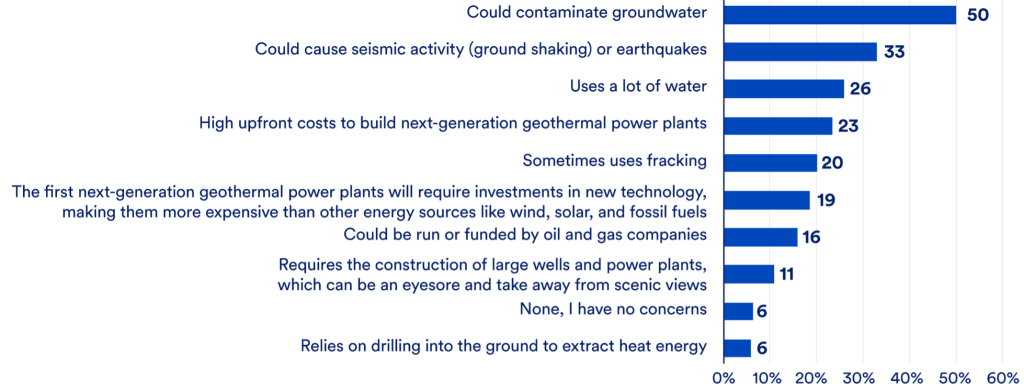 ThinkGeoEnergy’nin raporlamasında gözlemlendiği üzere, Avrupa’da özellikle gelişmiş jeotermal sistemlerle ilgili olarak tetiklenen sismisiteye ilişkin endişeler, jeotermal geliştirme konusundaki muhalefet ve soruların en önemli temalarını oluşturmaktadır. ABD’de ise CATF’nin araştırmasına göre yeraltı suyu kirliliği önemli bir endişe kaynağı olarak görülmektedir.