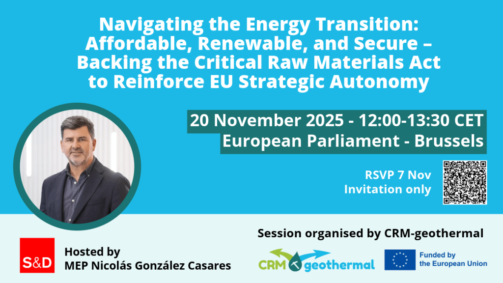20 Kasım 2025’te Belçika’nın Brüksel kentindeki Avrupa Parlamentosu’nda düzenlenecek “Enerji Geçişinde Yol Almak: Uygun Fiyatlı, Yenilenebilir ve Güvenli – AB Stratejik Özerkliğini Güçlendirmek İçin Kritik Hammaddeler Yasası’nı Desteklemek” konulu yüz yüze oturum için kayıtlar şu anda açıktır. Oturum, CRM-Geothermal tarafından düzenlenmektedir.