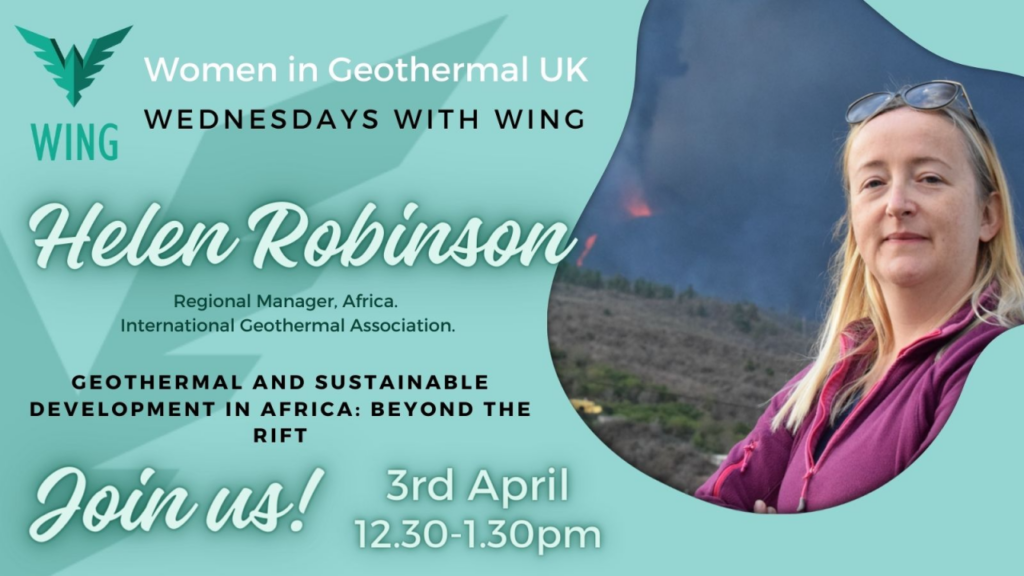 “Afrika’da Jeotermal ve Sürdürülebilir Kalkınma: Rift’in Ötesinde” konulu çevrim içi seminerine kayıtlar açıldı. Bu çevrim içi semineri, Jeotermalde Kadınlar’ın (WING) Birleşik Krallık bölümü olan WING UK tarafından düzenleniyor. Çevrim içi seminer detayları aşağıdaki gibidir: