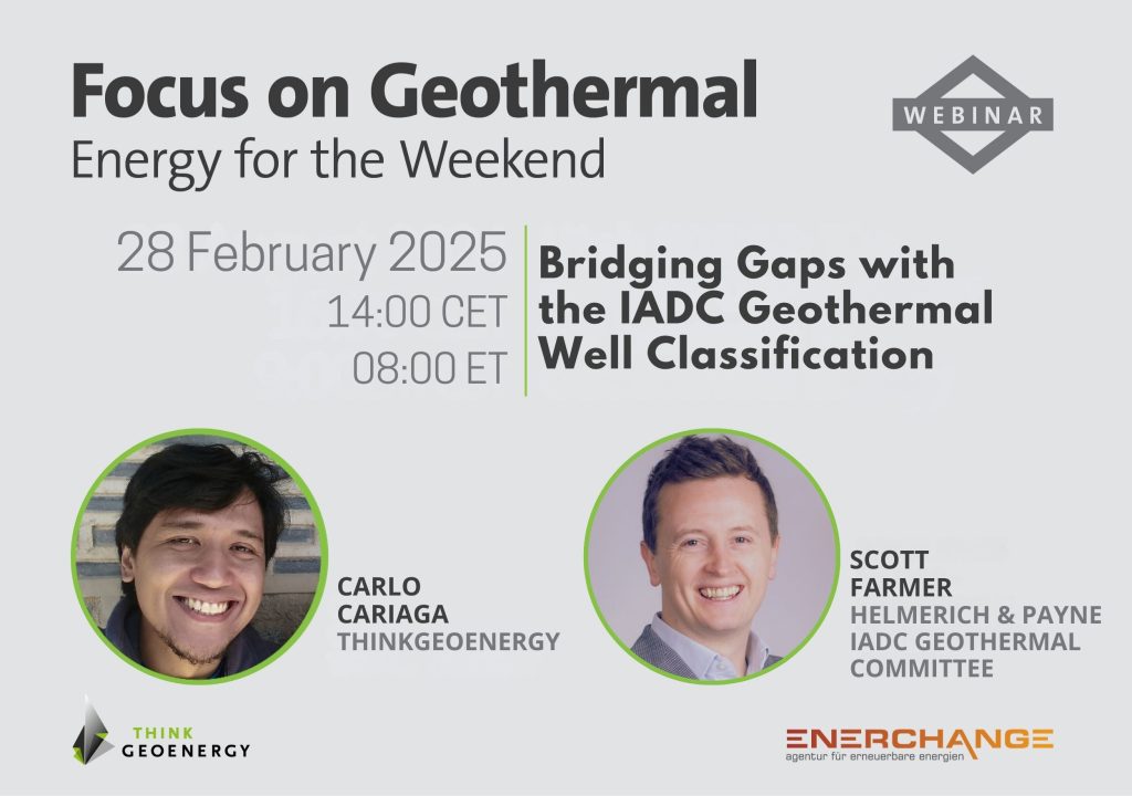 Enerchange ve ThinkGeoEnergy ortaklığıyla düzenlenen düzenli Jeotermal Odaklı Çevrim İçi Seminerleri serisinin bir parçası olarak, Helmerich & Payne’den Scott Farmer ve IADC Jeotermal Komitesi’ni “IADC Jeotermal Kuyu Sınıflandırmasıyla Boşlukları Kapatma” konulu seminerimiz için ağırlamaktan gurur duyuyoruz.