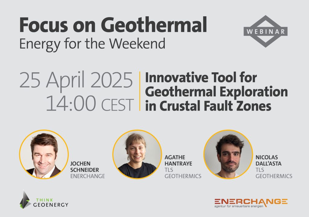 Enerchange ve ThinkGeoEnergy ortaklığıyla düzenlenen düzenli Jeotermal Odaklı Çevrim İçi Seminerleri serisinin bir parçası olarak, TLS Geothermics’ten Agatha Hantraye ve Nicolas Dall’asta’yı “Temeldeki kabuk fay zonlarında (Saksonya, Almanya) jeotermal keşif için yenilikçi bir araç olarak disiplinlerarası yaklaşım” konulu bir çevrim içi semineri için ağırlamaktan gurur duyuyoruz.