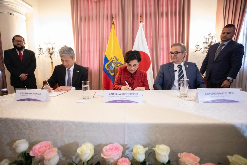 Başkent Quito’da düzenlenen imza törenine, Ekvador Dışişleri Bakanı Gabriela Sommerfeld, Japonya’nın Ekvador Büyükelçisi Keiichiro Morishita’nın yanı sıra Enerji ve Madenler Bakanı Antonio Goncalves, Ekonomi ve Maliye Bakanı Juan Carlos Vega ve Ekvador Elektrik Şirketi (CELEC) Yöneticisi Fabián Calero da katıldı.