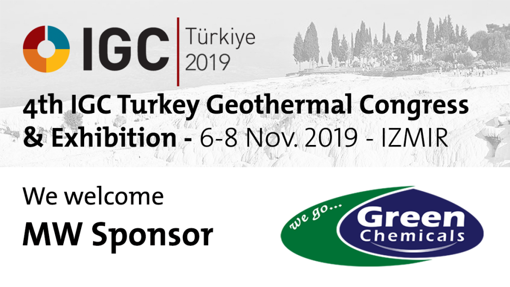 JeotermalHaberler ve IGC.etkinlikleri, GREEN Chemicals'ın İzmir, 6-8 Kasım 2019'da düzenlenen 4. IGC Türkiye Jeotermal Kongresi ve Fuarı'na MW sponsoru olarak katıldığını duyurmaktan gurur duyuyor.