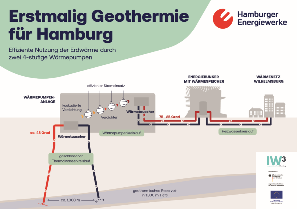 Hamburg-Wilhelmsburg’da 4 aşamalı jeotermal ısı pompası