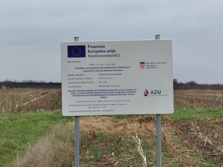 Hırvatistan’daki Velika Gorica jeotermal sahasında, VGGT-1 jeotermal kuyusunun sondaj çalışmalarının başlangıcını işaretleyen bir bilgi panosu kuruldu. Sondajın Aralık ortasında başlaması ve Temmuz 2025’e kadar sürmesi bekleniyor.