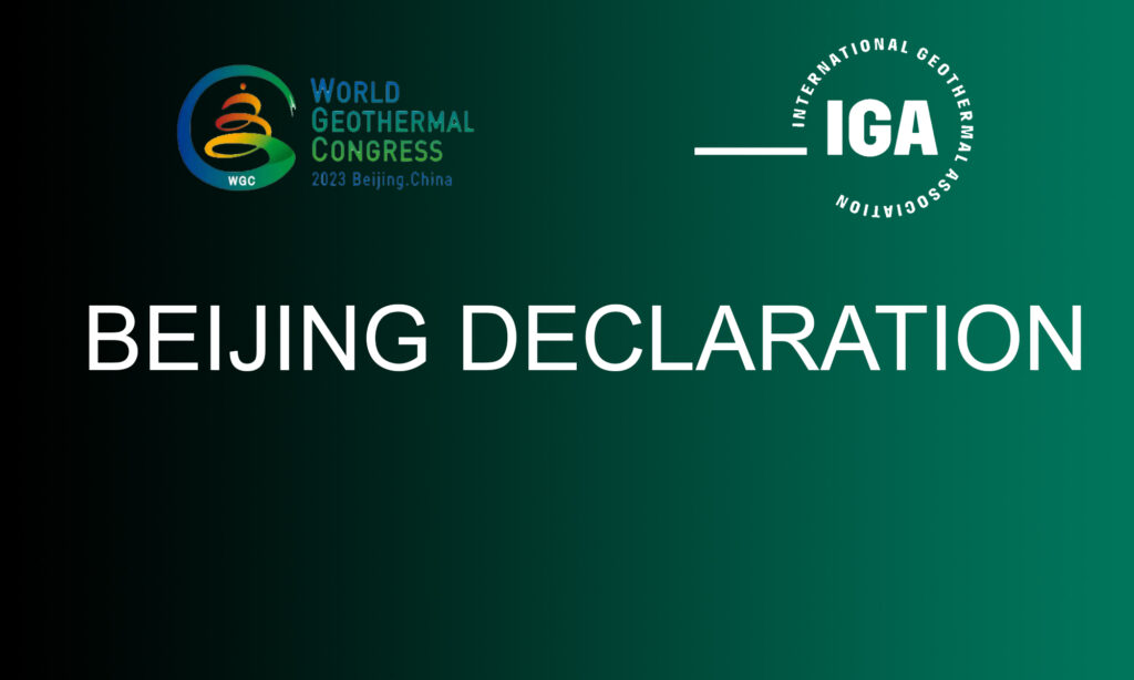 Çin’in Pekin kentinde düzenlenen 2023 Dünya Jeotermal Kongresi’nin ardından , Uluslararası Jeotermal Derneği (IGA), sektördeki karar vericilerin desteği için enerji geçişi hareketinde jeotermal enerjinin rolünü vurgulayan, küresel jeotermal endüstrisinin ne yapacağını özetleyen ve çağrıda bulunan Pekin Deklarasyonu’nu yayınladı.