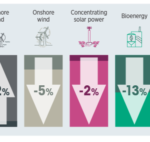 Aşağıda, IRENA raporunda bahsedilen eğilimlerin bir özeti yer almakta olup, son on yıldaki toplam kurulu maliyetler ve LCOE değerlerindeki belirgin dalgalanmalar gösterilmektedir. Buna kıyasla kapasite faktörü değerleri çok daha kararlıdır.