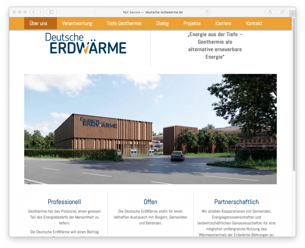 Deutsche ErdWärme, derin jeotermal enerji konusunda uzmanlaşmış bir şirkettir ve en son teknoloji ile jeotermal sistemleri planlamaktadır. 2025 yılına kadar, Yukarı Ren’in çeşitli yerlerinde jeotermal enerjiden yenilenebilir elektrik ve ısı üretmek ve yerinde başarılı bir enerji ve ısıtma geçişi için teklifler oluşturmak istemektedir.