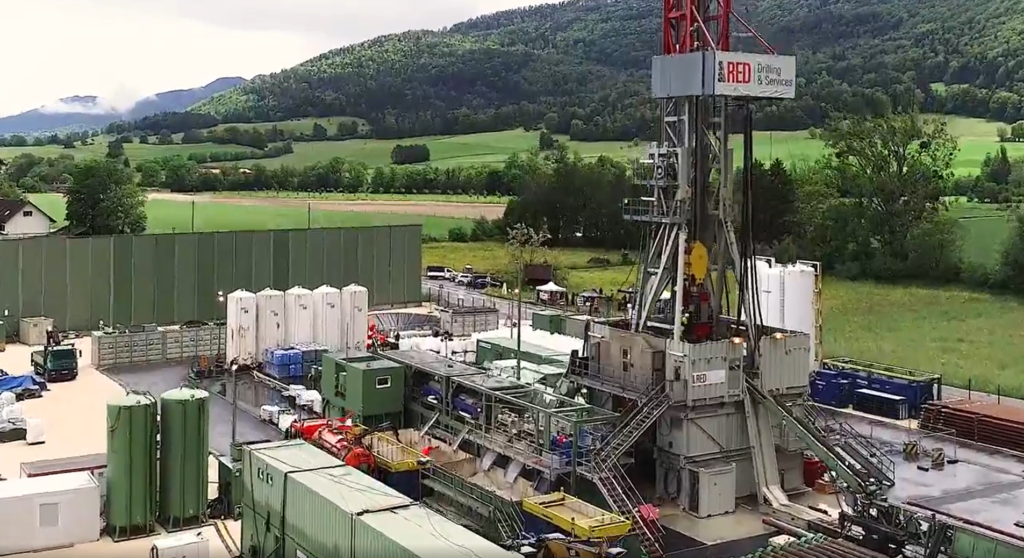 İsviçre'deki Haute-Sorne jeotermal projesindeki sondaj sahası (kaynak: Video ekran görüntüsü, RED Drilling & Services)