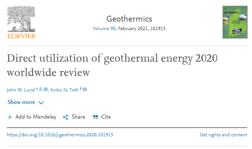 Jeotermal enerjinin doğrudan kullanımı; dünya çapında inceleme – 2020