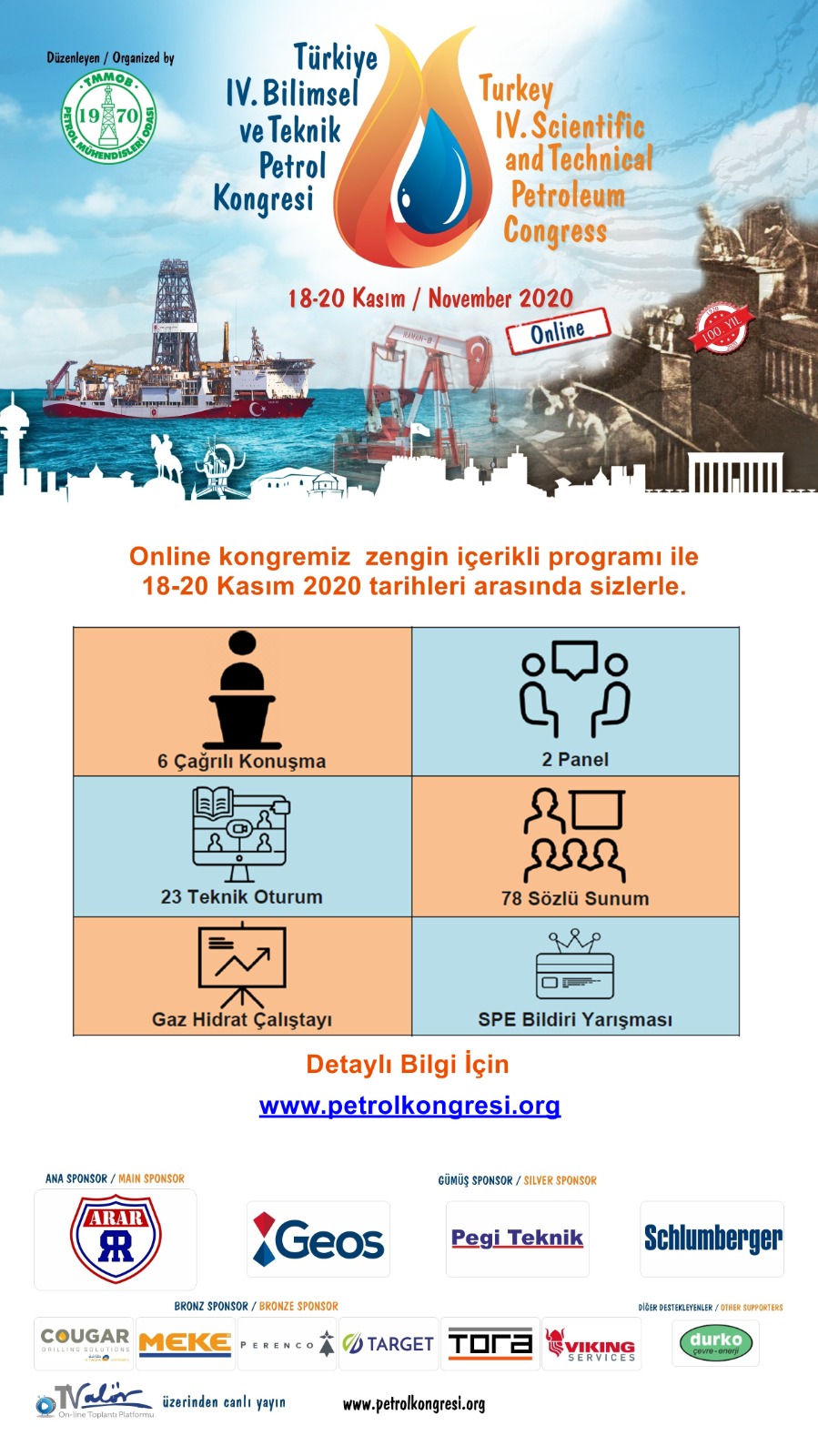 Kongre Düzenleme Kurulu ve PMO Yönetim Kurulu mevcut şartları göz önüne alarak yaptığı değerlendirmede, Türkiye IV. Bilimsel ve Teknik Petrol Kongresini 18-20 Kasım 2020 tarihlerinde çevrimiçi (online) ortamda düzenlemeye karar vererek, bu kapsamda tüm hazırlıkları tamamladı.