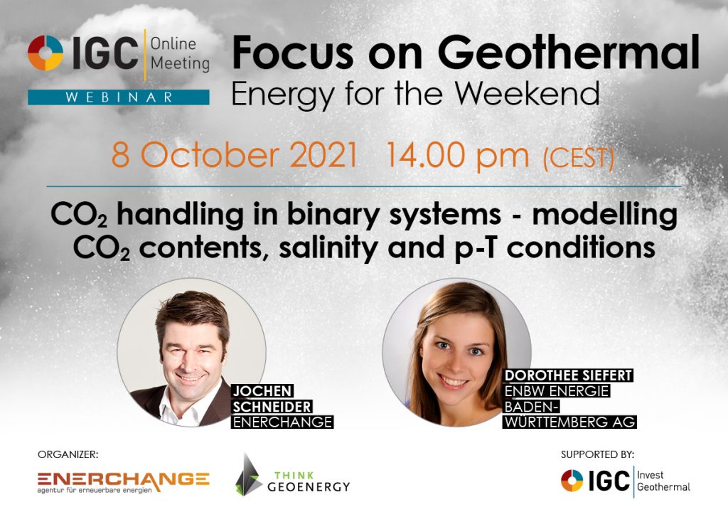 Enerchange ve ThinkGeoEnergy ortaklığı olan düzenli IGC Web Semineri serisinin bir parçası olarak – Almanya’daki EnBW Energie Baden-Württemberg AG’den Dorothee Siefert, “İkili sistemlerde CO2 işleme – CO2 içeriği, tuzluluk ve pT koşullarının modellenmesi” konulu bir sunum yapacak.