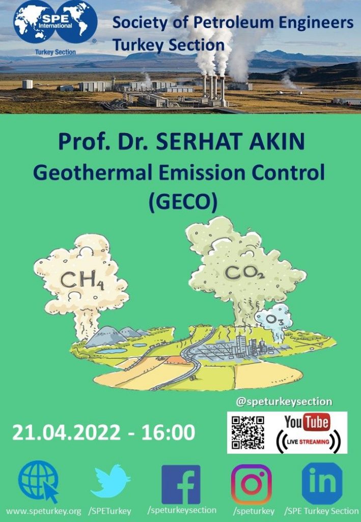 SPE Turkey Section Webinar Serisi kapsamında, Prof. Dr. Serhat Akın ile, "Jeotermal Emisyon Kontrolü (GECO)" konulu bir web semineri düzenliyor.