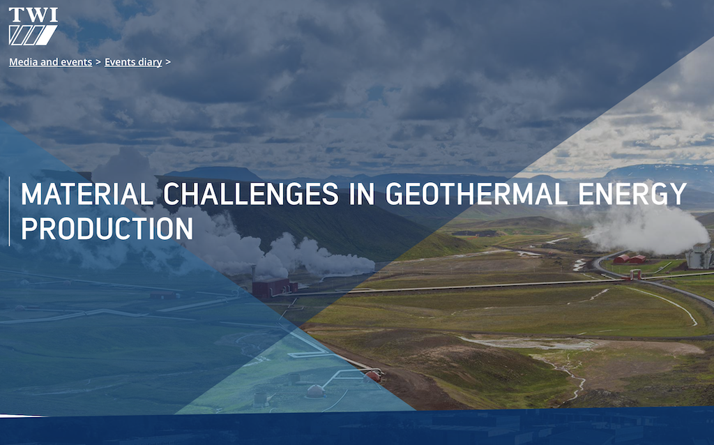 Geo Coat araştırma projesi ve proje yöneticisi TWI, 22 Ocak 2020’de İngiltere saatiyle 15:00’da “kaplamaların jeotermal enerji üretiminde yaşanan maddi hasarların azaltılmasına yardımcı olup olmadığı hakkında” bir web semineri olacağını açıkladı.