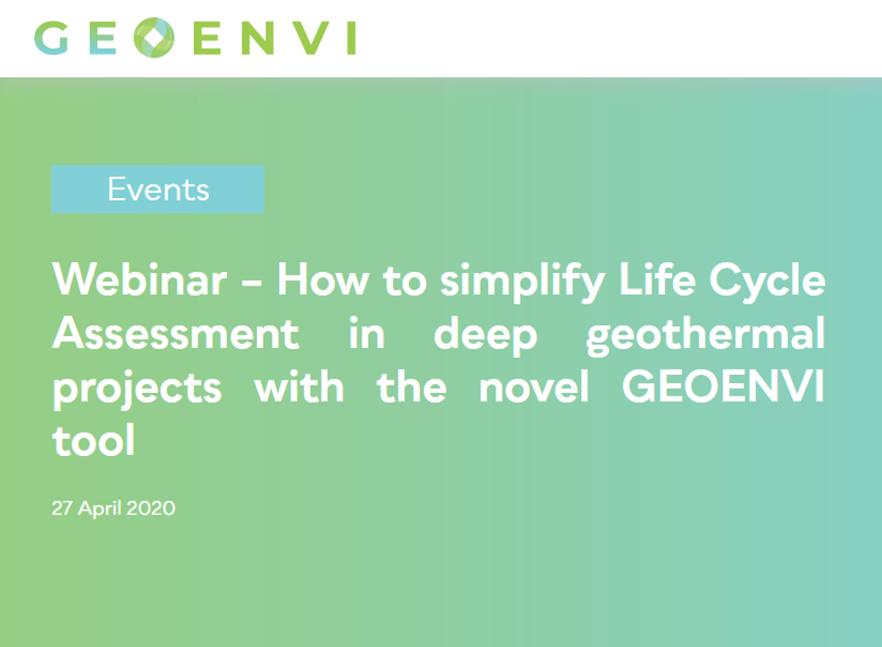 27 Nisan Pazartesi günü saat 12: 00'de (TR saati) GEOENVI projesi “Derin jeotermal projelerde Yaşam Döngüsü Değerlendirmesi nasıl basitleştirilir" konulu web semineri düzenleniyor.