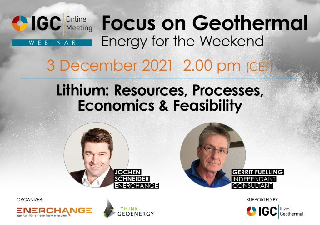 Enerchange ve ThinkGeoEnergy ortaklığı ile düzenlenen IGC Webinar serisinde bu hafta, lityum çıkarma alanında uzman olan ve “ Lityum: Kaynaklar, Süreçler, Ekonomi ve Fizibilite” hakkında konuşacak olan Gerrit Fuelling’i ağırlamaktan gurur duyuyoruz.