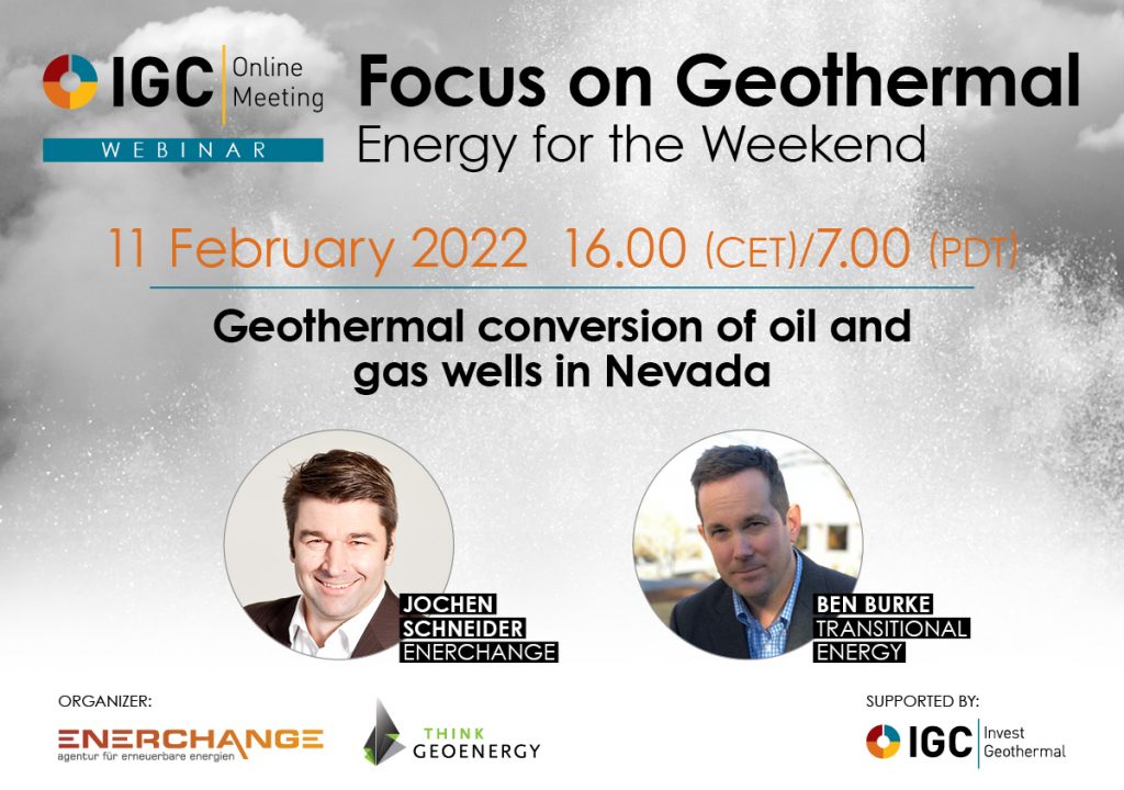 Enerchange ve ThinkGeoEnergy’nin bir ortaklığı olan düzenli IGC Web Semineri serisinin bir parçası olarak, Nevada’daki mevcut petrol ve gaz kuyularının jeotermal dönüşümü hakkında bilgi verecek olan Transitional Energy’den bu haftaki sunucu Dr. Ben Burke’ü ağırlamaktan onur duyuyoruz.