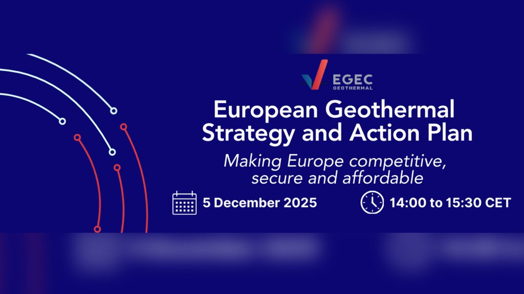Avrupa Jeotermal Enerji Konseyi (EGEC) tarafından merakla beklenen Avrupa Jeotermal Stratejisi ve Eylem Planı hakkında düzenlenecek web seminerine kayıtlar başladı . Web semineri, 5 Aralık 2025 tarihinde 14:00-15:30 CET saatleri arasında gerçekleştirilecektir. Web seminerine kayıt olmak için buraya tıklayın.